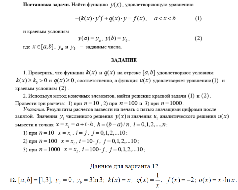 Отчет по лабораторной работе №4 "Решение краевой задачи для одномерного стационарного уравнения теплопроводности методом конечных элементов" (вариант №12)
