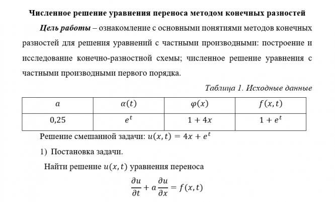 Для студентов МГТУ им. Н.Э.Баумана по предмету Численные методы для уравнений математической физикиОтчет по лабе №2 "Решение уравнений переноса методом конечных разностей" (вариант №15)Отчет по лабе №2 "Решение уравнений переноса методом конечных разностей" (вариант №15)