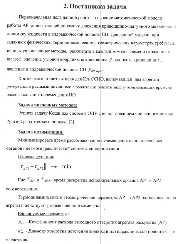 Для студентов МГТУ им. Н.Э.Баумана по предмету Численные методыМинимизация времени рассогласования перемещения исполнительных органов пневмогидравлической системы синхронизацииМинимизация времени рассогласования перемещения исполнительных органов пневмогидравлической системы синхронизации