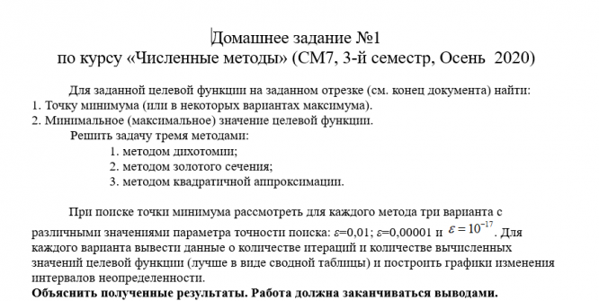 Для студентов МГТУ им. Н.Э.Баумана по предмету Численные методыДомашнее задание №1Домашнее задание №1