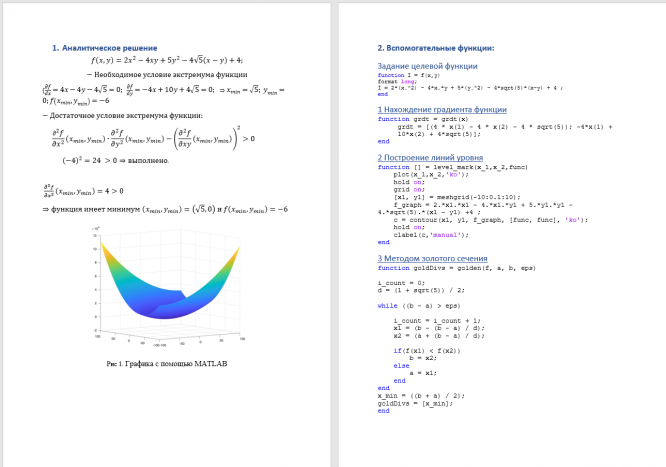 1. Решить данную задачу аналитически – получить точное решение. Доказать, что найденная точка действительно является точкой минимума (см «ЛА и ФНП»).
