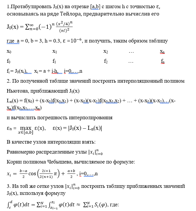 1. Протабулировать J0(x) на отрезке [a,b] с шагом h с точностью ε, основываясь на ряде Тейлора, предварительно вычислив его