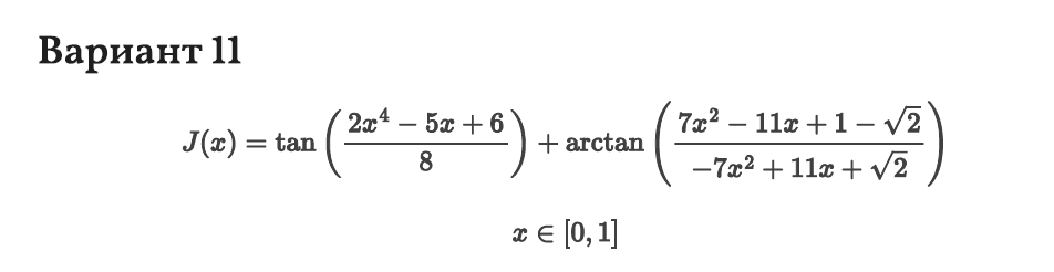 ДЗ 1: Численные методы вариант 11