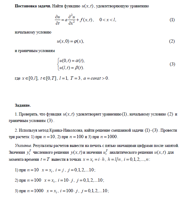 Для студентов МГТУ им. Н.Э.Баумана по предмету Численные методыРешение смешанной задачи для нестационарного одномерного уравнения теплопроводности методом Кранка-НиколсонаРешение смешанной задачи для нестационарного одномерного уравнения теплопроводности методом Кранка-Николсона 2016-11-22СтудИзба