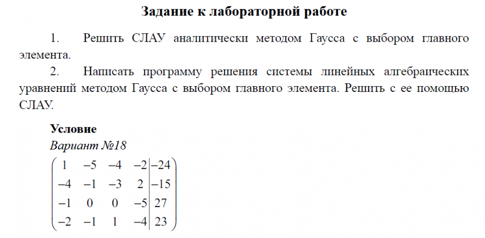 Лабораторная работа 1: Решение систем линейных алгебраических уравнений методом Гаусса с выбором главного элемента вариант 18