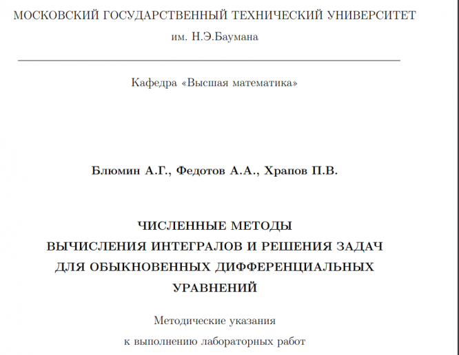 Лекции: Блюмин А.Г., Федотов А.А., Храпов П.В. «Численные методы вычисления интегралов и решения ОДУ»