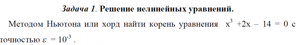 Задача: Решение нелинейных уравнений. Методом Ньютона или хорд найти корень уравнения