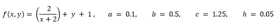 Задача: Решить задачу Коши для дифференциального уравнения y’ = f(x, y) на отрезке [a; b] при заданном начальном условии y(a) = c и шаге h методом 1) Эйлера и 2) модифицированным методом Эйлера.