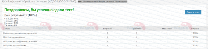Курс Цифровая обработка сигналов - КМ-1. Базовые понятия теории сигналов. Тестирование - 100%