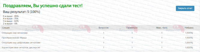 Курс Цифровая обработка сигналов - КМ-1. Базовые понятия теории сигналов. Тестирование - 100%