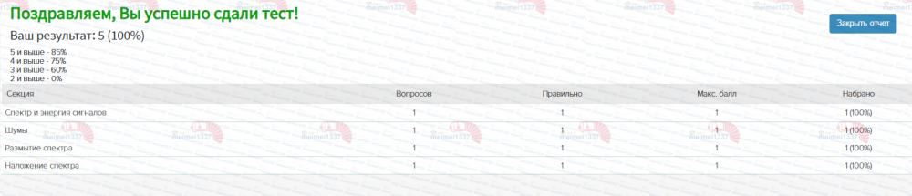 Курс Цифровая обработка сигналов - КМ-2. Базовые понятия теории сигналов. Тестирование - 100%