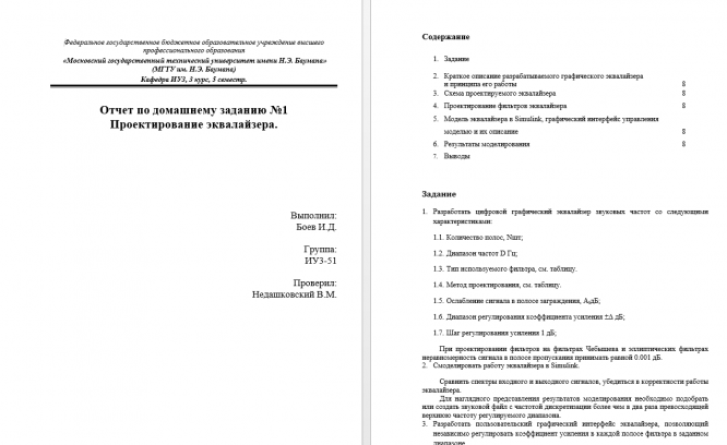 Для студентов МГТУ им. Н.Э.Баумана по предмету Цифровая обработка сигналов (ЦОС)Проектирование эквалайзераПроектирование эквалайзера