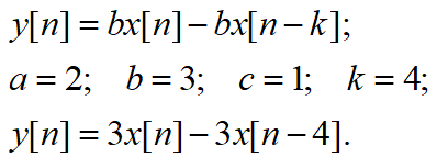 По разностному уравнению цифровых цепей проверьте их физическую реализуемость (казуальность), стационарность, линейность и устойчивостьЗапишем заданное разностное уравнение с учетом варианта 8, подварианта 3: