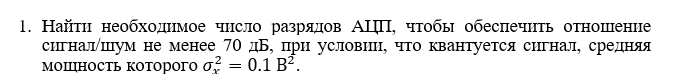 1. Найти необходимое число разрядов АЦП, чтобы обеспечить отношение сигнал/шум не менее 70 дБ, при условии, что квантуется сигнал, средняя мощность которого