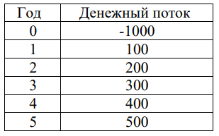 Рассмотрим проект, денежные потоки которого приведены ниже в таблице, ставка дисконта 25%: