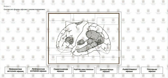 Соотнесите формы афазии с зонами поражения. Нарушение артикуляционных схем отдельных звуков является первичным дефектом при афазии Нарушение способности к реализации серийных артикуляционных актов и организации сукцессивных речевых рядов является первичным дефектом при афазии. Нарушение функции речевого программирования и/или расстройство грамматического структурирования является первичным дефектом при афазии. Нарушение фонематического слуха, т.е. способности к дифференциации на слух близких по звучанию фонем, а на этой основе понимания речи в целом является первичным дефектом при ... афазии ужение объема слухо-речевой памяти и слабость следов воспринимаемой речи является первичным дефектом при афазии.