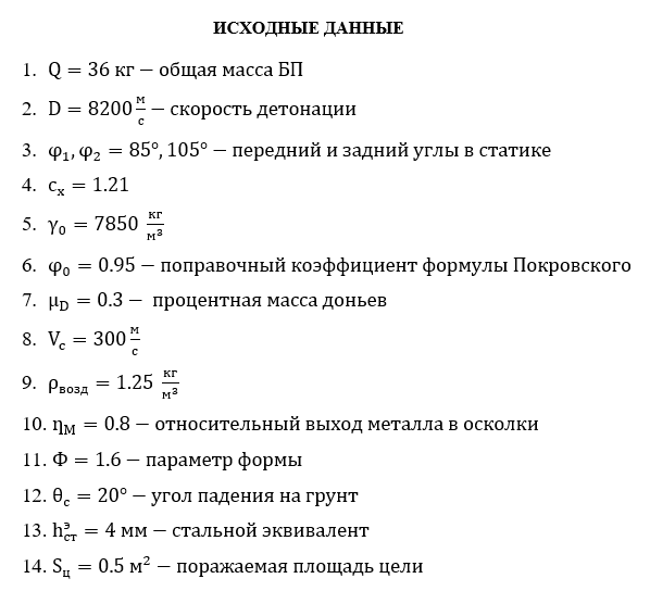 ДЗ 1: Расчет осколочного действия БП вариант 6