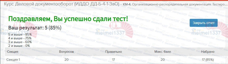 Для студентов ИДДО НИУ «МЭИ» по предмету Деловой документооборотКурс Деловой документооборот - КМ-4. Организационно-распорядительная документация. ТестированиеКурс Деловой документооборот - КМ-4. Организационно-распорядительная документация. Тестирование