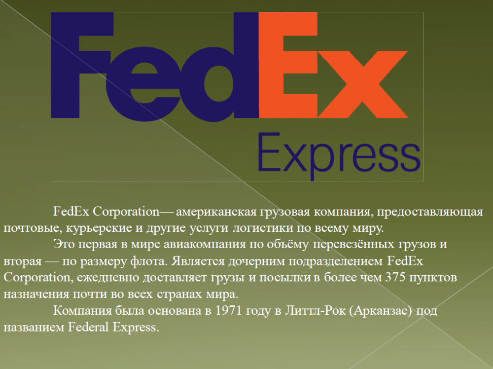Для студентов МГТУ им. Н.Э.Баумана по предмету Деловой этикетТема "Компания FedEx Corporation"Тема "Компания FedEx Corporation"