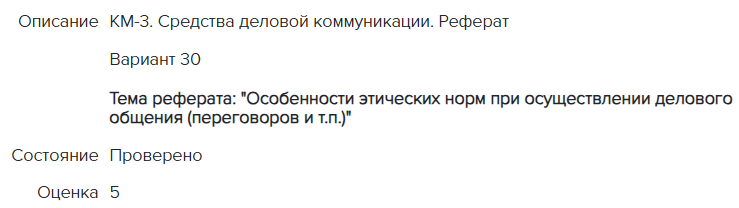 КМ-3. Средства деловой коммуникации Вариант 30 Особенности этических норм при осуществлении делового общения (переговоров и т.п.)