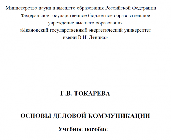 Для студентов ИГЭУ им. Ленина по предмету Деловые коммуникацииТокарева Г.В. - Основы деловой коммуникацииТокарева Г.В. - Основы деловой коммуникации 2025-07-02СтудИзба