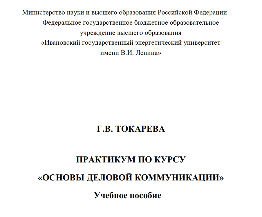 Главная » Учебные материалы » Деловые коммуникации » Книги » ИГЭУ им. Ленина » 1 семестр » Токарева Г.В. - Практикум по курсу Основы деловой коммуникации