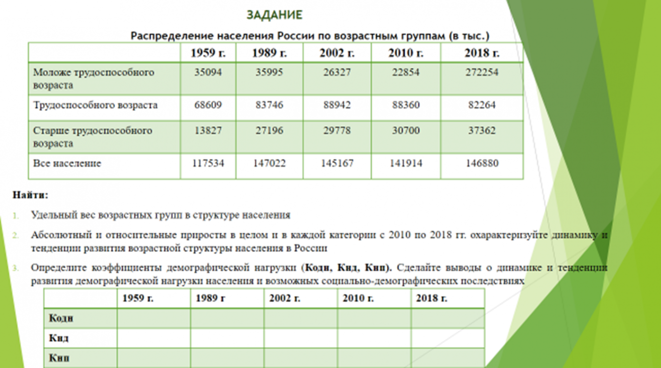 Задание 1Тема: Половозрастной состав населения. Половозрастные пирамиды.