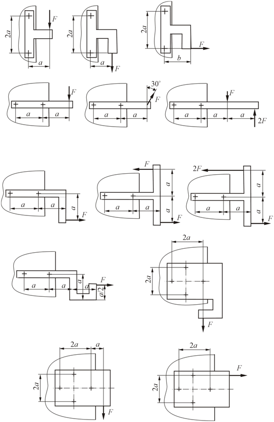 • Сила приложена в плоскости стыка. Болты установлены с зазором. Изобразить поперечное сечение соединения по болту. Рассчитать одно из резьбовых соединений двух пластин.