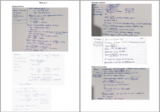 Модуль 1 Диаметр болта Размеры шпонки Сварка Натяг Модуль 2 Кинематические параметры Силы зацепления Допускаемые напряжения Модуль 3 Эквивалентная динамическая нагрузка Параметры муфты.