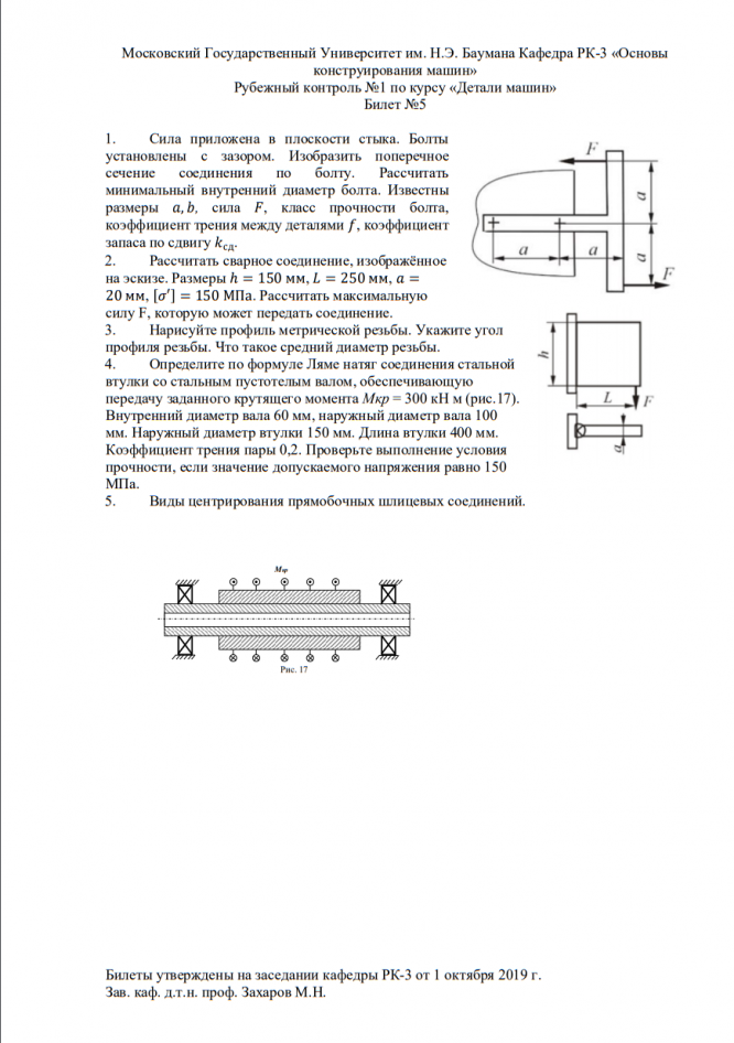 Для студентов МГТУ им. Н.Э.Баумана по предмету Детали машин (ДМ)РК №1 БИЛЕТ №5РК №1 БИЛЕТ №5