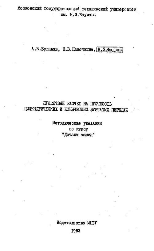 Для студентов МГТУ им. Н.Э.Баумана по предмету Детали машин (ДМ)А.В. Буланже, Н.В. Палочкина, В.З. Фадеев - Проектный расчет на прочность цилиндрических и конических зубчатых передачА.В. Буланже, Н.В. Палочкина, В.З. Фадеев - Проектный расчет на прочность цилиндрических и конических зубчатых передач