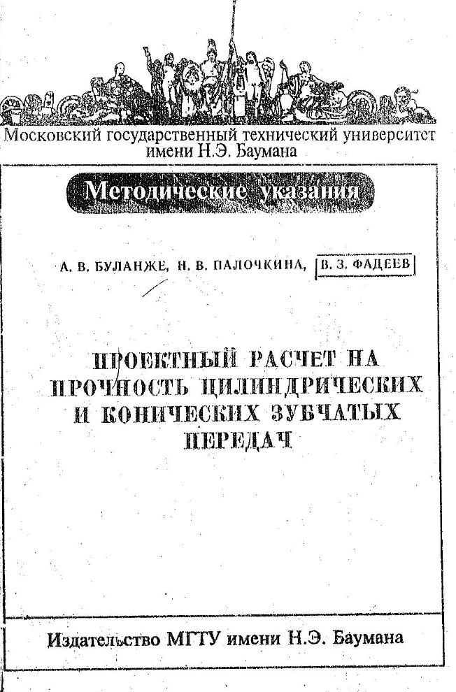 Для студентов МГТУ им. Н.Э.Баумана по предмету Детали машин (ДМ)А.В. Буланже, Н.В. Палочкина, В.З. Фадеев - Проектный расчет на прочность цилиндрических и конических зубчатых передачА.В. Буланже, Н.В. Палочкина, В.З. Фадеев - Проектный расчет на прочность цилиндрических и конических зубчатых передач