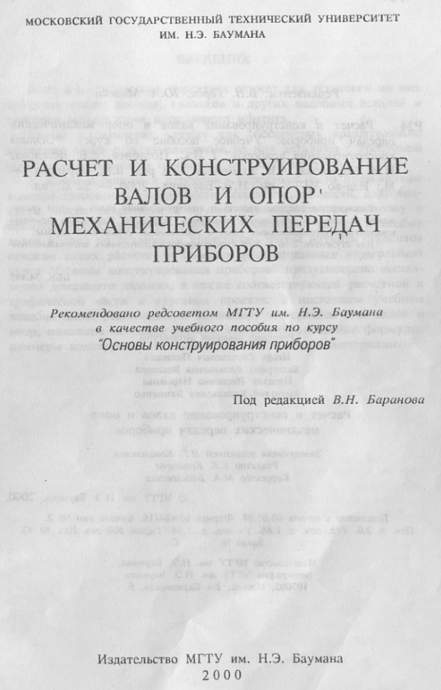 Для студентов МГТУ им. Н.Э.Баумана по предмету Детали машин (ДМ)В.Н. Баранов - Расчет и конструирование валов и опор механических приборовВ.Н. Баранов - Расчет и конструирование валов и опор механических приборов 2017-12-28СтудИзба