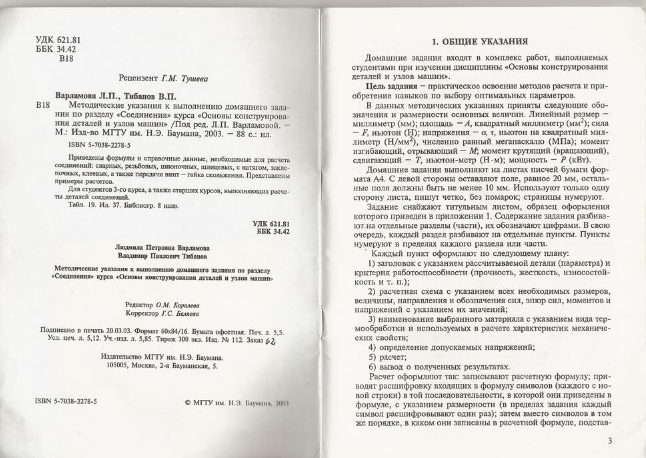 Для студентов МГТУ им. Н.Э.Баумана по предмету Детали машин (ДМ)Л.П. Варламова, В.П. Тибанов - Методические указания к выполнению домашнего задания по разделу СоединенияЛ.П. Варламова, В.П. Тибанов - Методические указания к выполнению домашнего задания по разделу Соединения