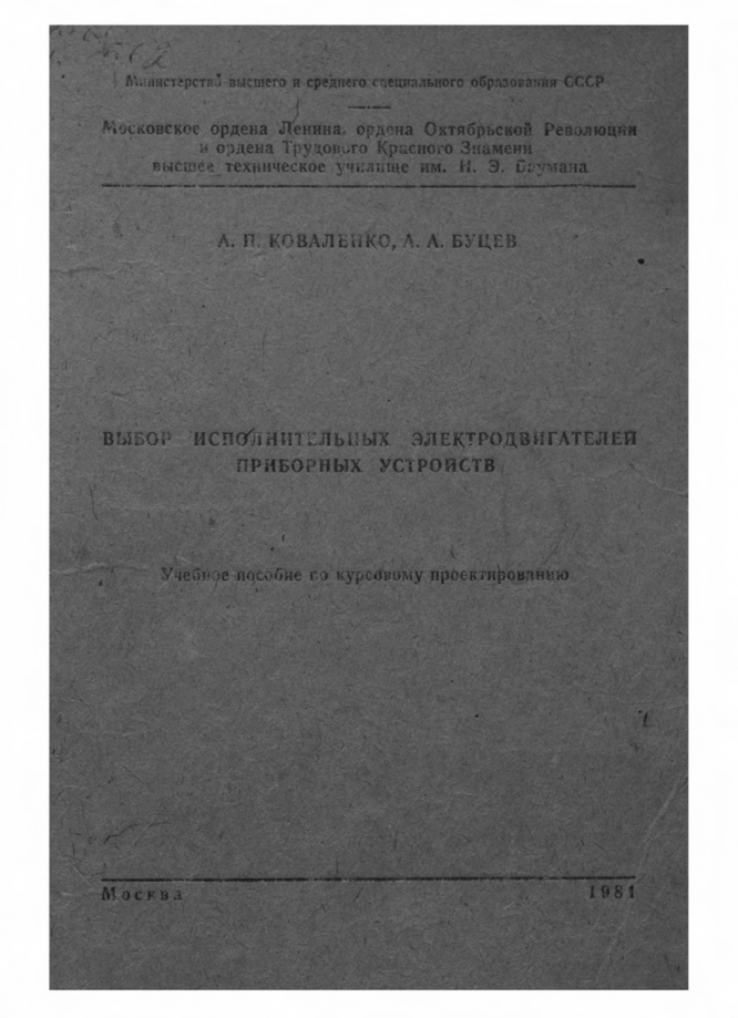 Для студентов МГТУ им. Н.Э.Баумана по предмету Детали машин (ДМ)Тищенко О. Ф. - Выбор исполнительных электродвигателей приборных устройствТищенко О. Ф. - Выбор исполнительных электродвигателей приборных устройств