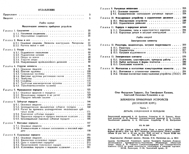 Элементы приборных устройств (Основной курс). В 2-х ч. Ч. 1. Детали, соединения и передачи Тищенко О.Ф., Киселев Л.Т., Коваленко А.П. и др.; под ред. Тищенко О.Ф. - М._ Высш. школа, 1982. - 304 с.