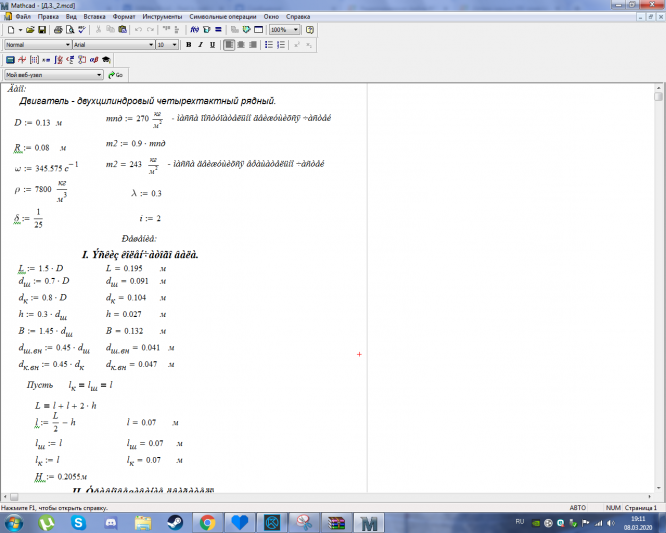 Курсовая работа: Двигатель - двухцилиндровый четырехтактный рядный Расчёт в МатКаде