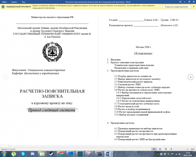 Для студентов МГТУ им. Н.Э.Баумана по предмету Детали машин (ДМ)Курсач "Привод следящей системы" листы и РПЗКурсач "Привод следящей системы" листы и РПЗ