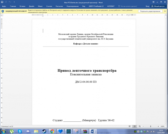 Для студентов МГТУ им. Н.Э.Баумана по предмету Детали машин (ДМ)05-04 РПЗ05-04 РПЗ