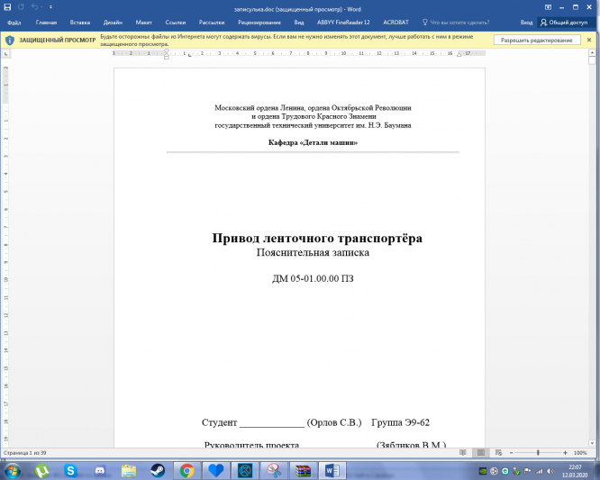 Для студентов МГТУ им. Н.Э.Баумана по предмету Детали машин (ДМ)ДМ-05.01 рпз и листыДМ-05.01 рпз и листы