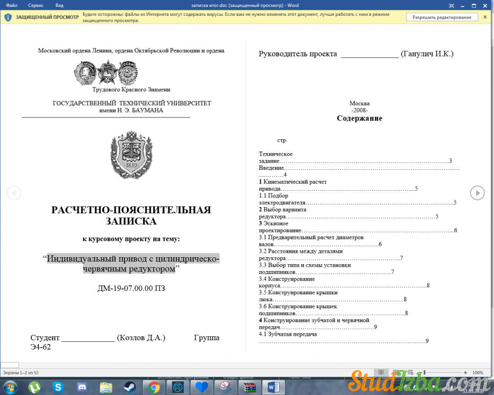 Для студентов МГТУ им. Н.Э.Баумана по предмету Детали машин (ДМ)ДМ-19 Индивидуальный привод с цилиндрическо-червячным редуктором РПЗ и ЛистыДМ-19 Индивидуальный привод с цилиндрическо-червячным редуктором РПЗ и Листы