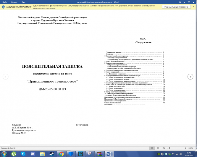 Для студентов МГТУ им. Н.Э.Баумана по предмету Детали машин (ДМ)Курсовой проект 20 РПЗ и Листы Привод цепного транспортераКурсовой проект 20 РПЗ и Листы Привод цепного транспортера