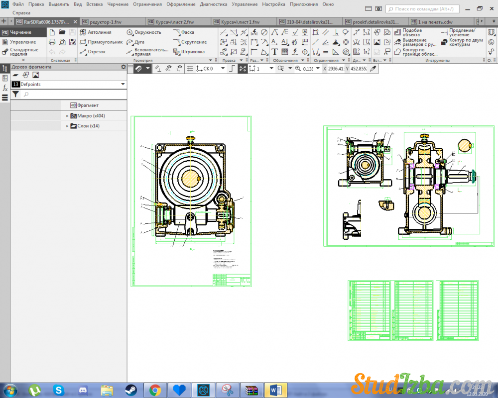 11. Порядок сборки редуктора, выполнение необходимых регулировочных работ…………………………………………........……32
