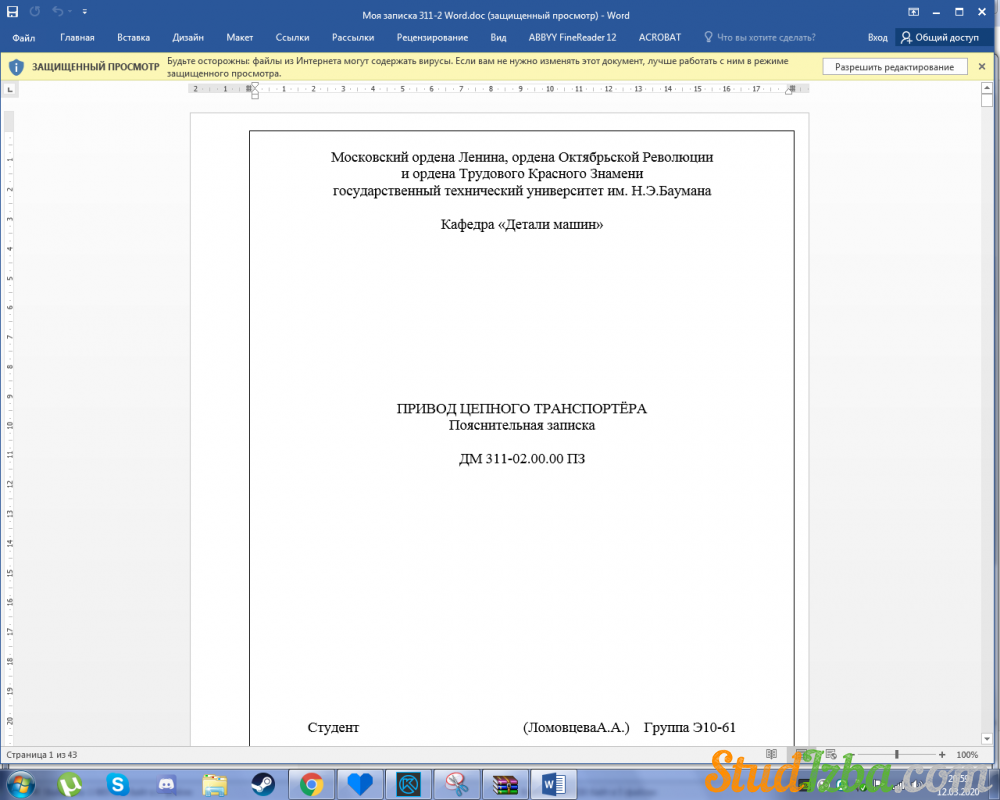 Для студентов МГТУ им. Н.Э.Баумана по предмету Детали машин (ДМ)311-2 Зябликов РПЗ311-2 Зябликов РПЗ