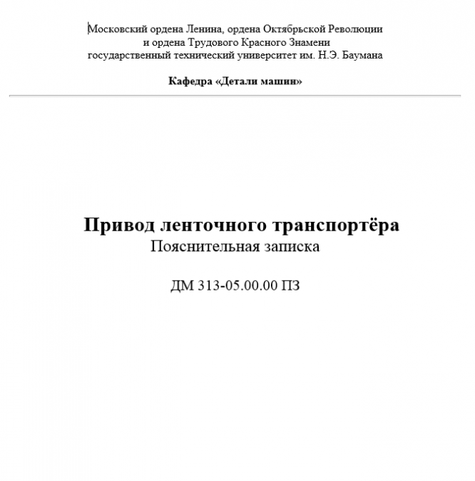 Для студентов МГТУ им. Н.Э.Баумана по предмету Детали машин (ДМ)313v листы + рпз Привод ленточного транспортёра313v листы + рпз Привод ленточного транспортёра