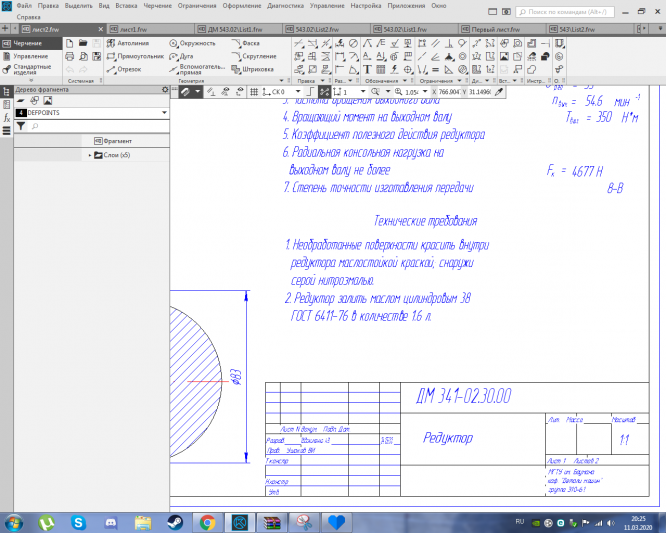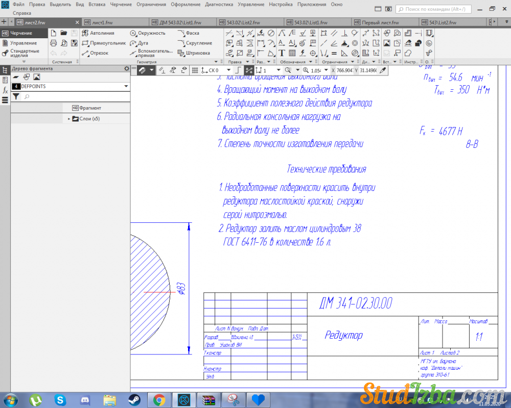Для студентов МГТУ им. Н.Э.Баумана по предмету Детали машин (ДМ)Курсовой проект 341 РПЗ и ЛистыКурсовой проект 341 РПЗ и Листы