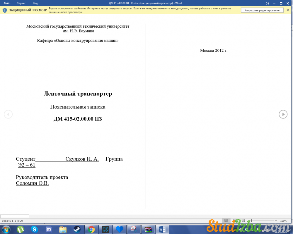 Для студентов МГТУ им. Н.Э.Баумана по предмету Детали машин (ДМ)415-2 Ленточный транспортер РПЗ и Листы415-2 Ленточный транспортер РПЗ и Листы