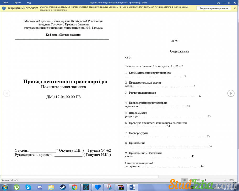 Для студентов МГТУ им. Н.Э.Баумана по предмету Детали машин (ДМ)Курсовой проект 417 РПЗ и ЛистыКурсовой проект 417 РПЗ и Листы