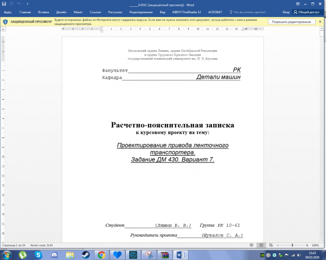 Для студентов МГТУ им. Н.Э.Баумана по предмету Детали машин (ДМ)Курсовой проект 430 Листы и РПЗКурсовой проект 430 Листы и РПЗ