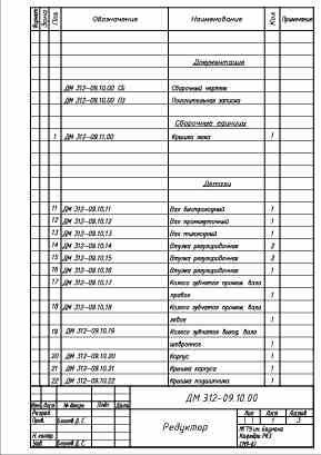 • сборочный чертеж редуктора (на стадии технического проекта);